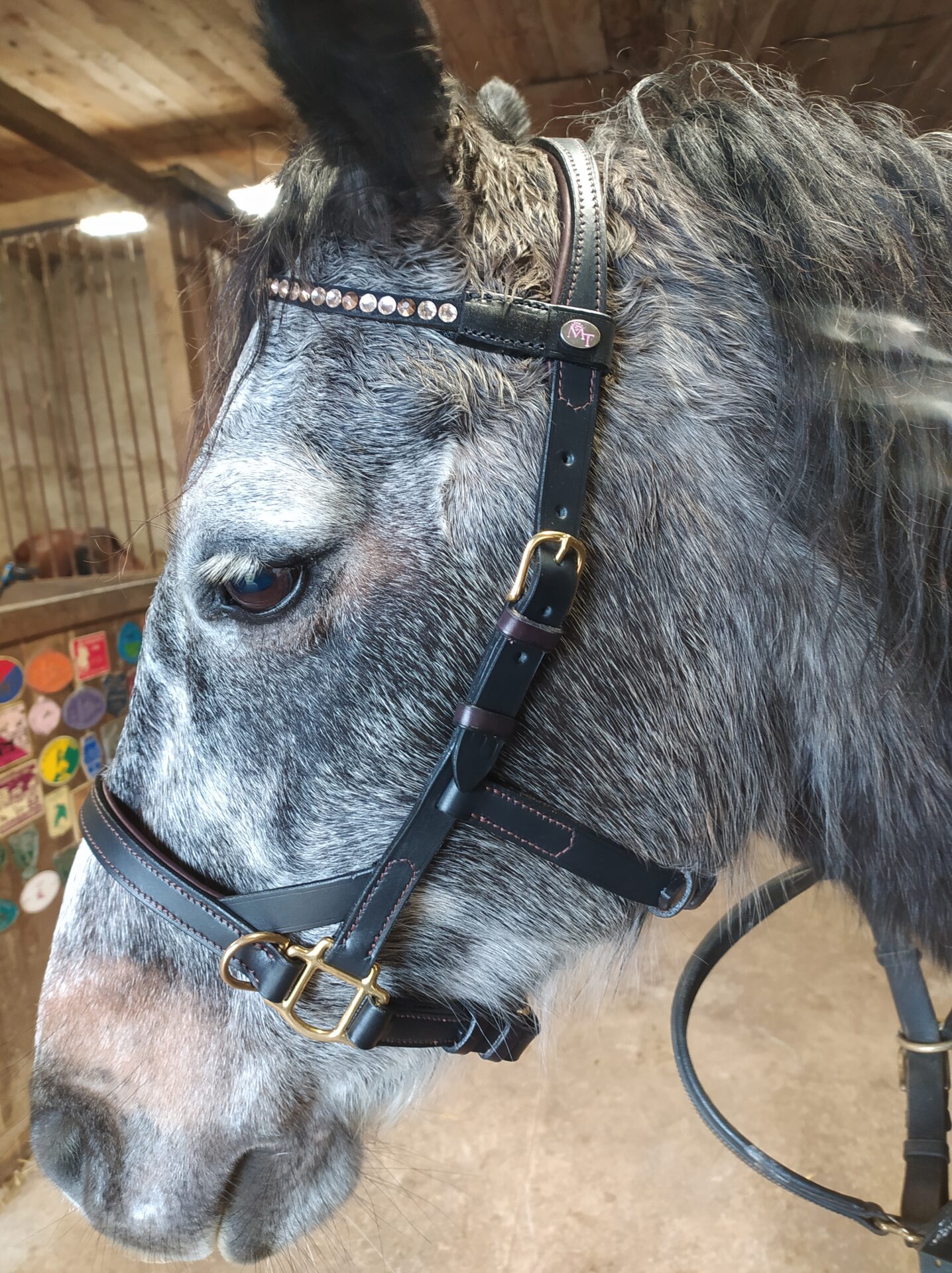 La muserolle et la têtière sont doublées, le frontal est de forme droite doublé ou non.